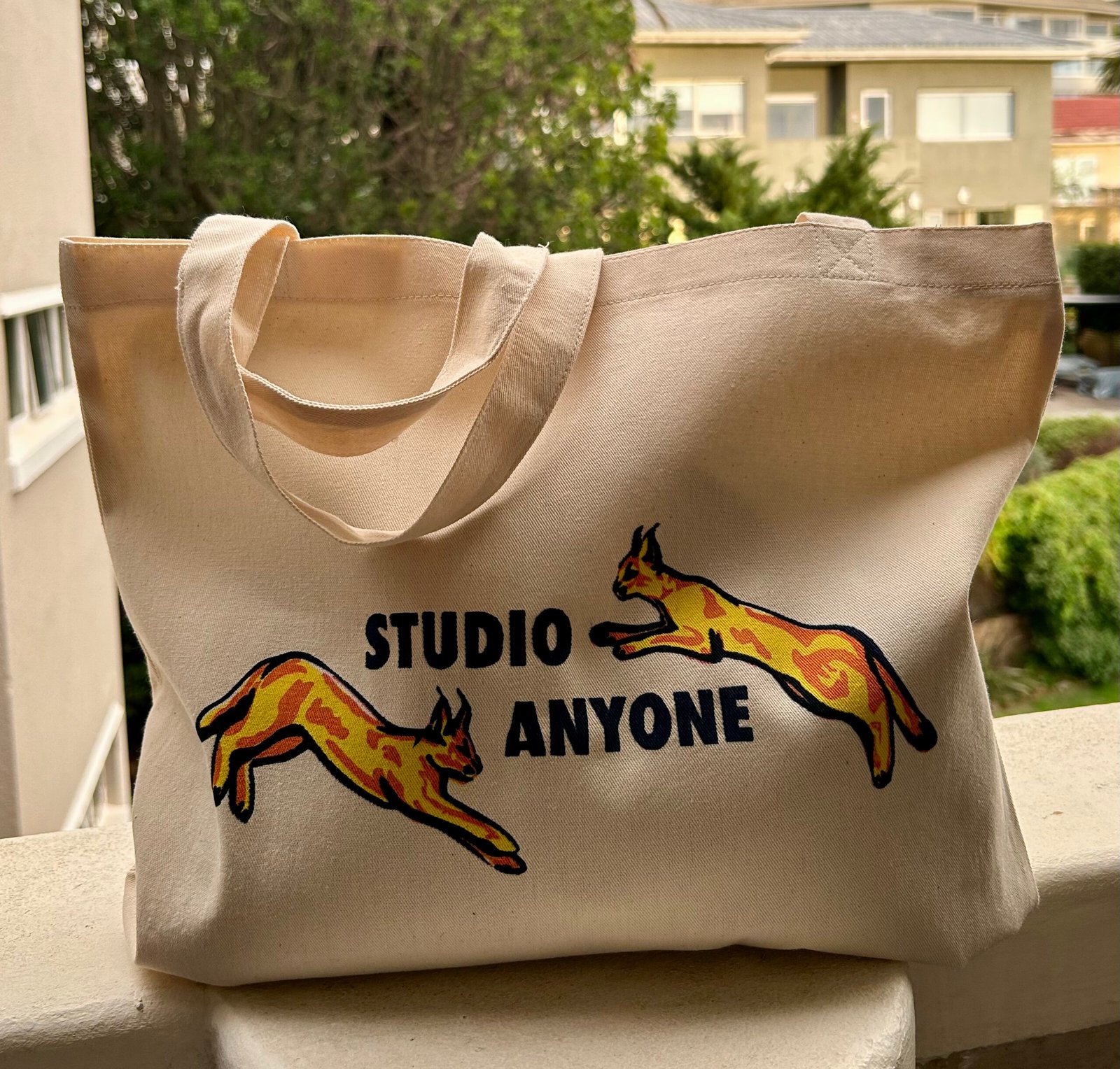 The eye-catching Studio Anyone design was individually screen printed by hand onto a durable cotton tote bag. And now, it’s available for you to enjoy! The perfect grab and go accessory ready for a day out, unexpected shopping and whatever else life may throw your way.